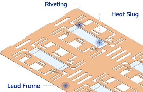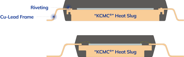 - - Heat Slug와 Lead Frame은 각각 별도 또는 리벳 기술로 조립된 상태로 공급 가능합니다.